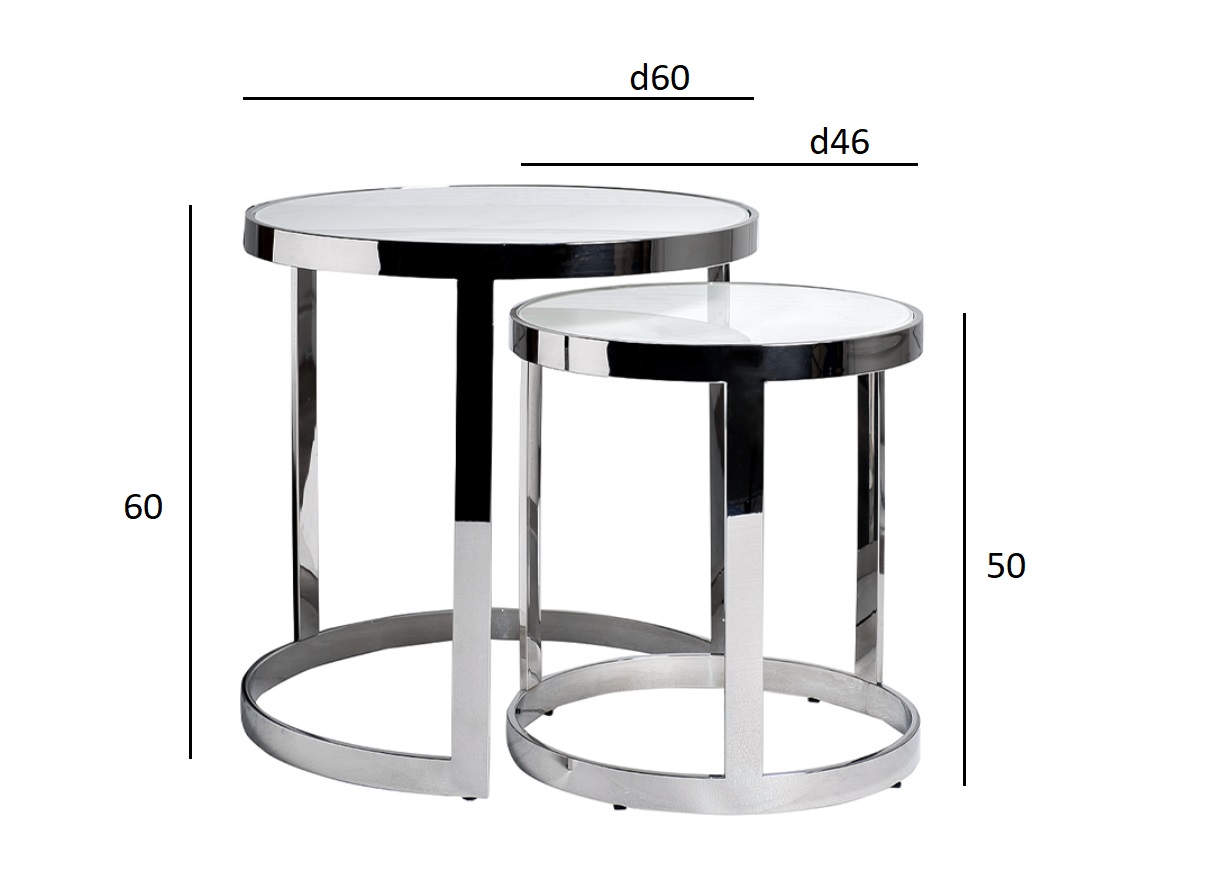 47ED-ET081S Столы журн(наб из 2шт)стекло мрам/хром d60*60/d46*50