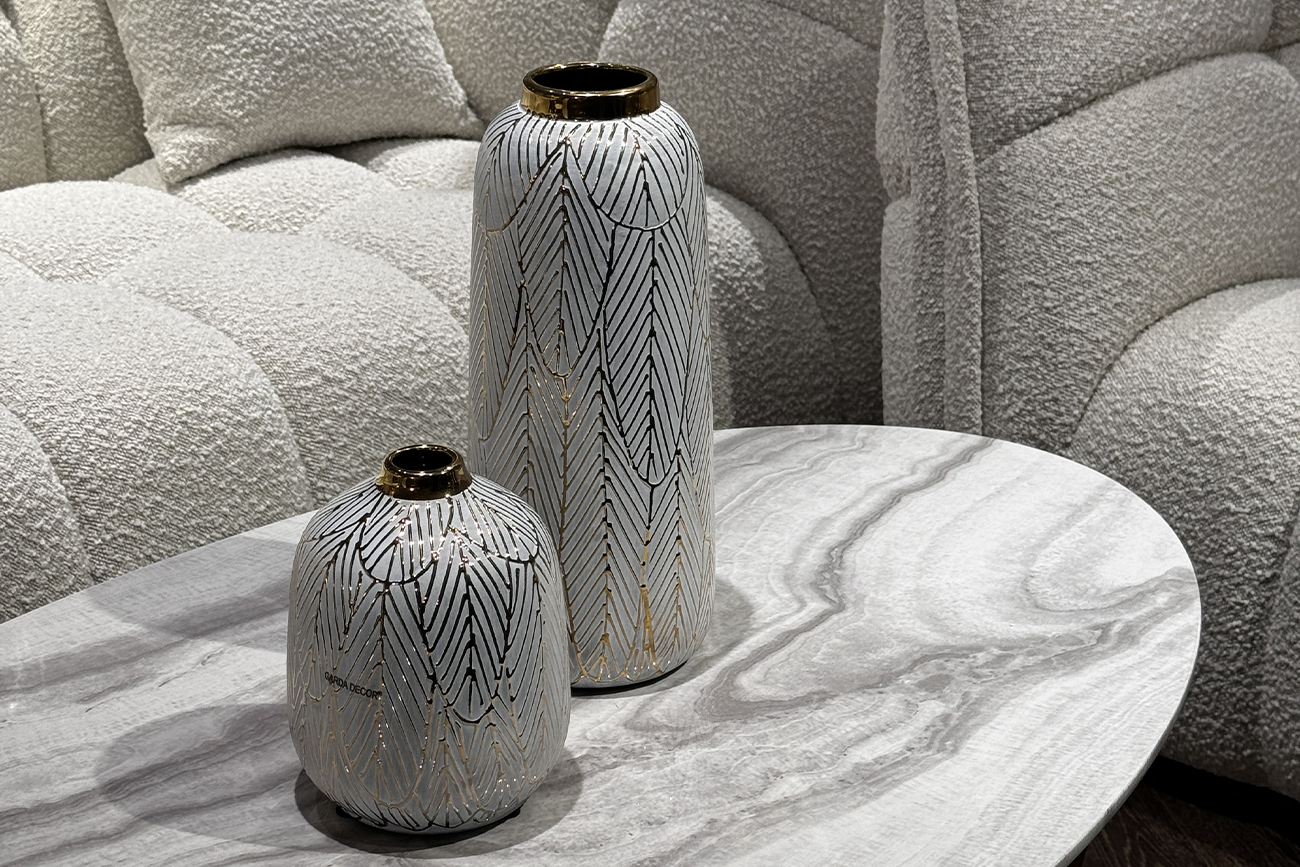 18H2861-20 Ваза керамическая с золотым принтом d15*20см