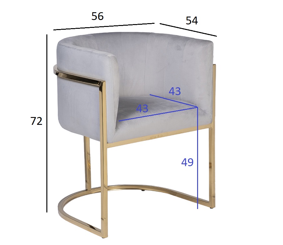 30C-DX-2010-1 LBG Кресло велюр серо-голубой 54*56*72см