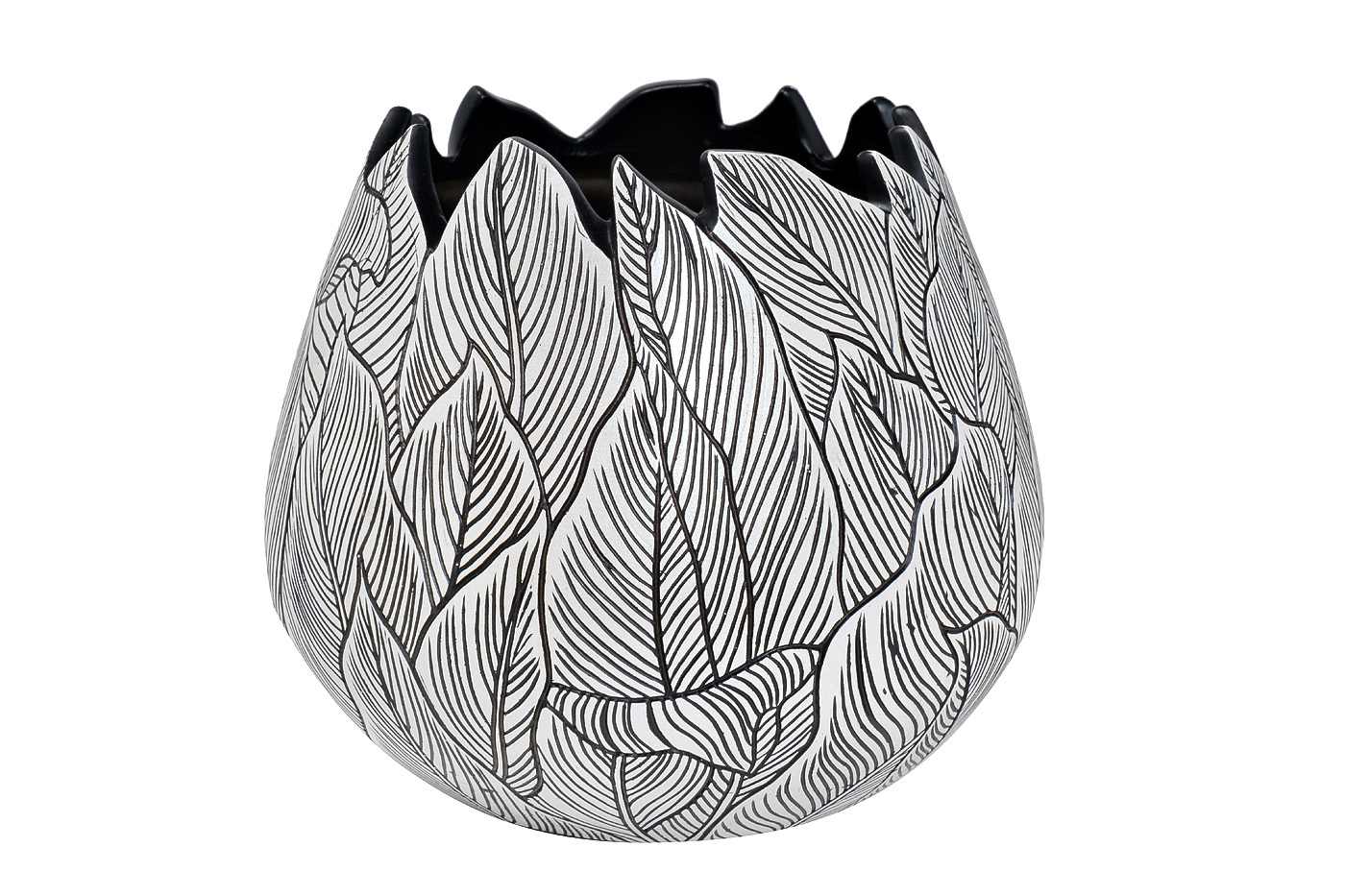 ZS2001-10 Кашпо черно-белое "Листья" d25*22см