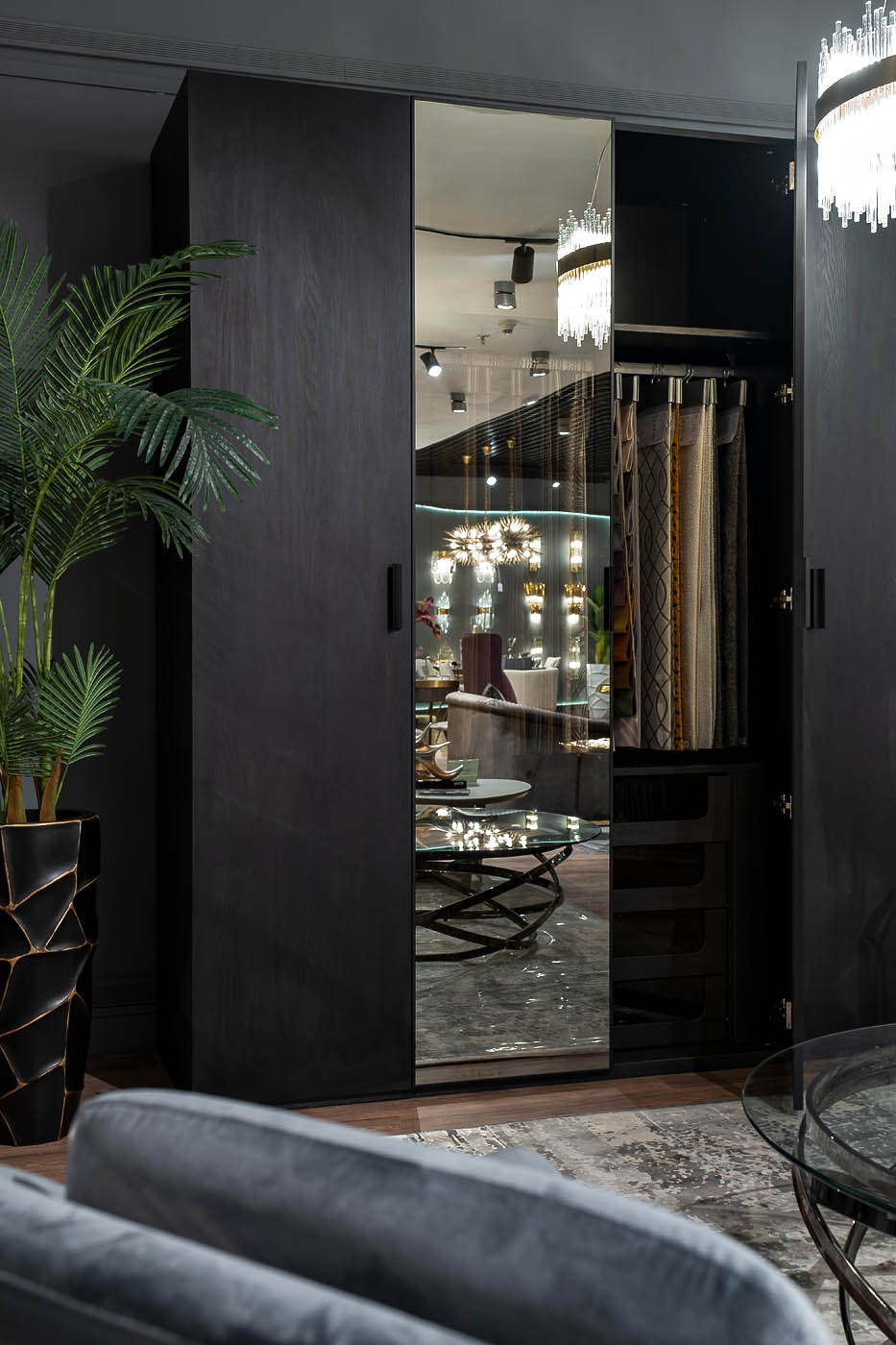 Чтобы купить 140SA-133BL-ST Шкаф двухдверный с выдвижными ящиками цвет черный, дверцы стеклянные, оформите покупку в четыре клика через корзину