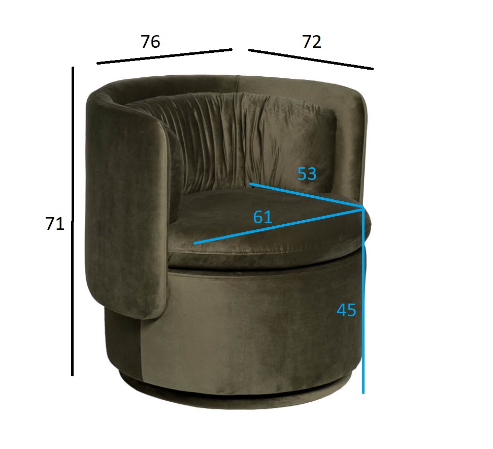 ZW-KRES-061 ZEL Кресло поворотное велюр зеленый 76*72*71см