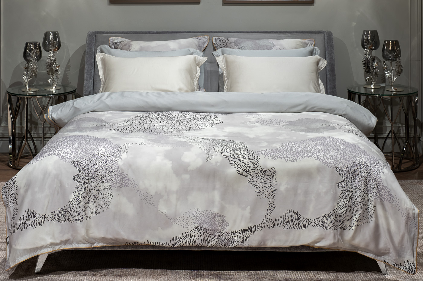 144HF-10301 Пододеяльник Нувола принт тенсель серый 220*200