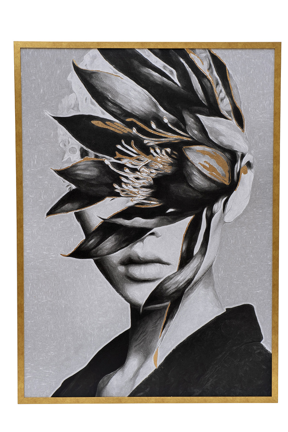 89VOR-GIRL FLOWER-1 Холст "Девушка с цветами-1" 110*80 см, багет золото, зол.поталь