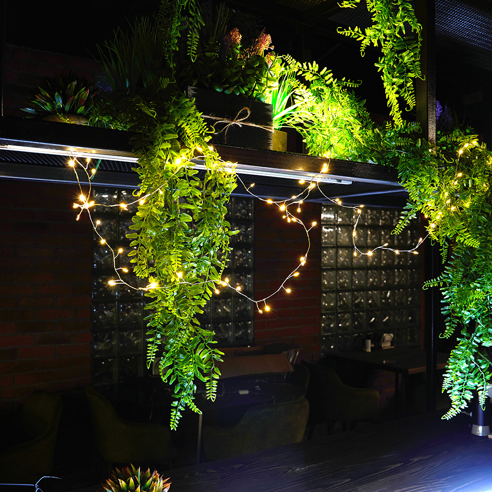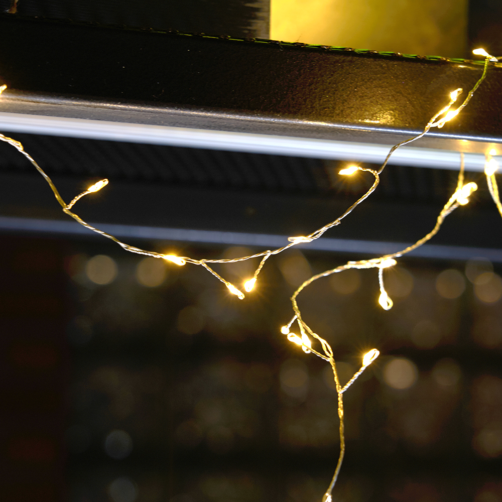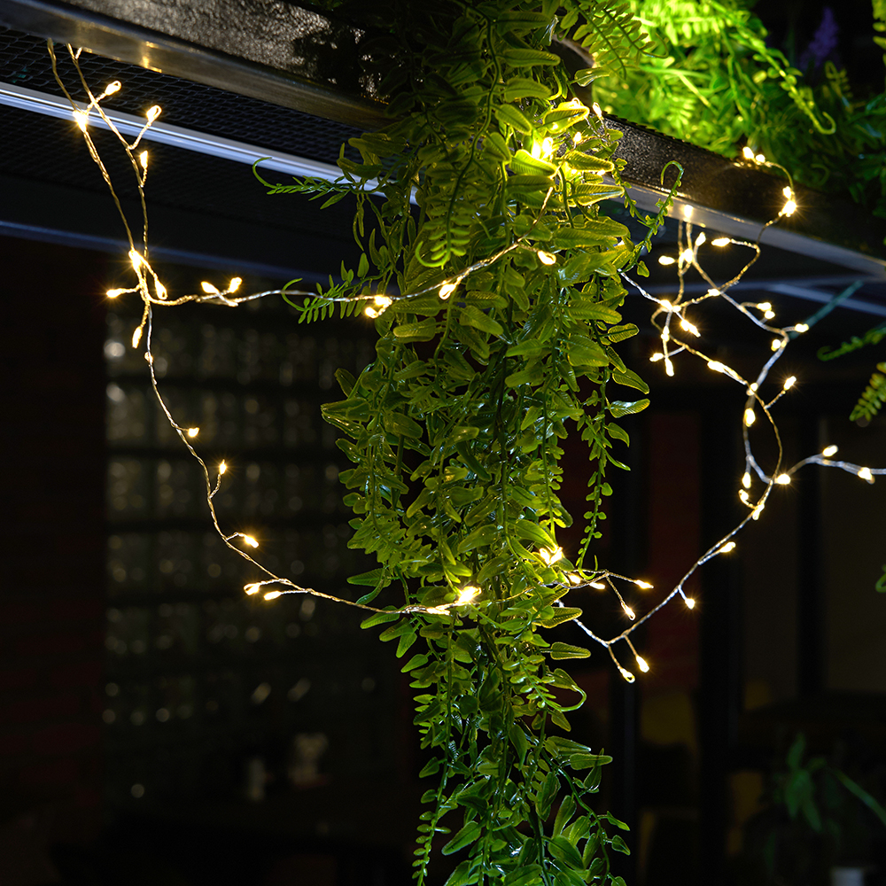 Светодиодная гирлянда Кластер (на проволоке) Feron CL584 линейная 400 LED 12м 2700К, c питанием от сети 230V, прозрачный шнур 51447