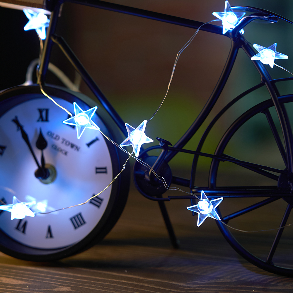 Светодиодная гирлянда Feron CL589 линейная Звездочки на проволоке, 5000К, с питанием от батареек, прозрачный шнур 2.3м 51446