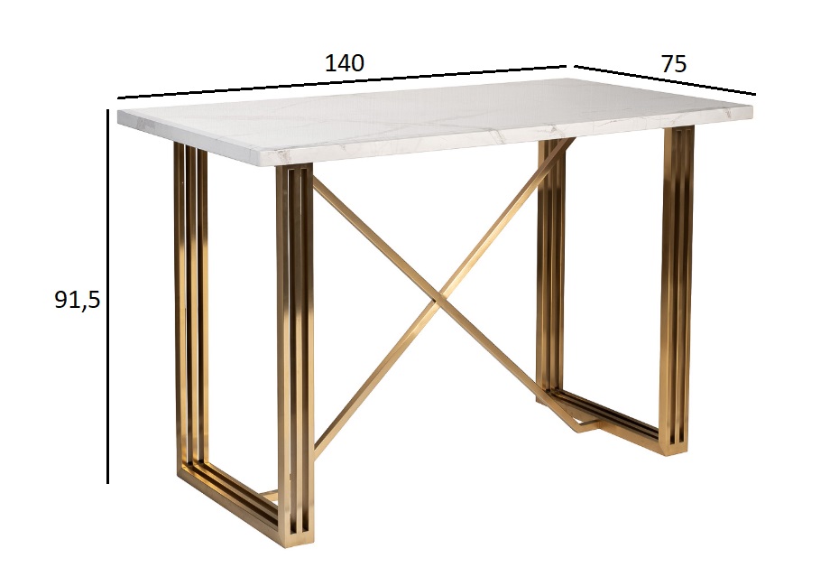 30F-14790 Стол-консоль белый / браш.золото 140*75*91,5см